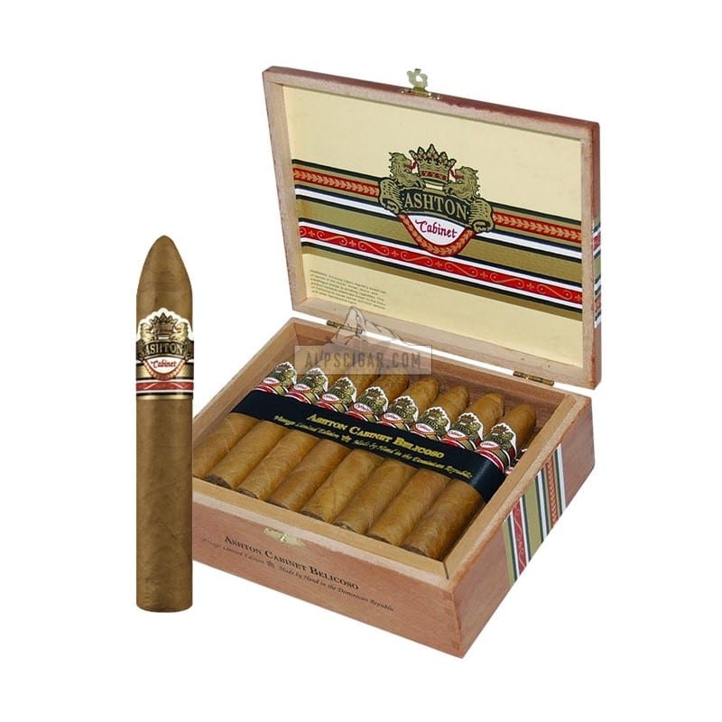 Les cigares Ashton Cabinet Selection Belicoso sont fabriqués à la main exclusivement par les maîtres-mélangeurs des cigares Arturo Fuente. Ces cigares de luxe, légers à mi-corsés, sont vieillis à la perfection avec un mélange parfaitement équilibré de tabacs dominicains sélectionnés de trois à quatre ans, entourés de capes dorées Connecticut Shade, puis vieillis un an de plus après le roulage. Comme tous les cigares Ashton, la construction est de premier ordre et vous offre une fumée toujours riche et complexe en arômes séduisants.