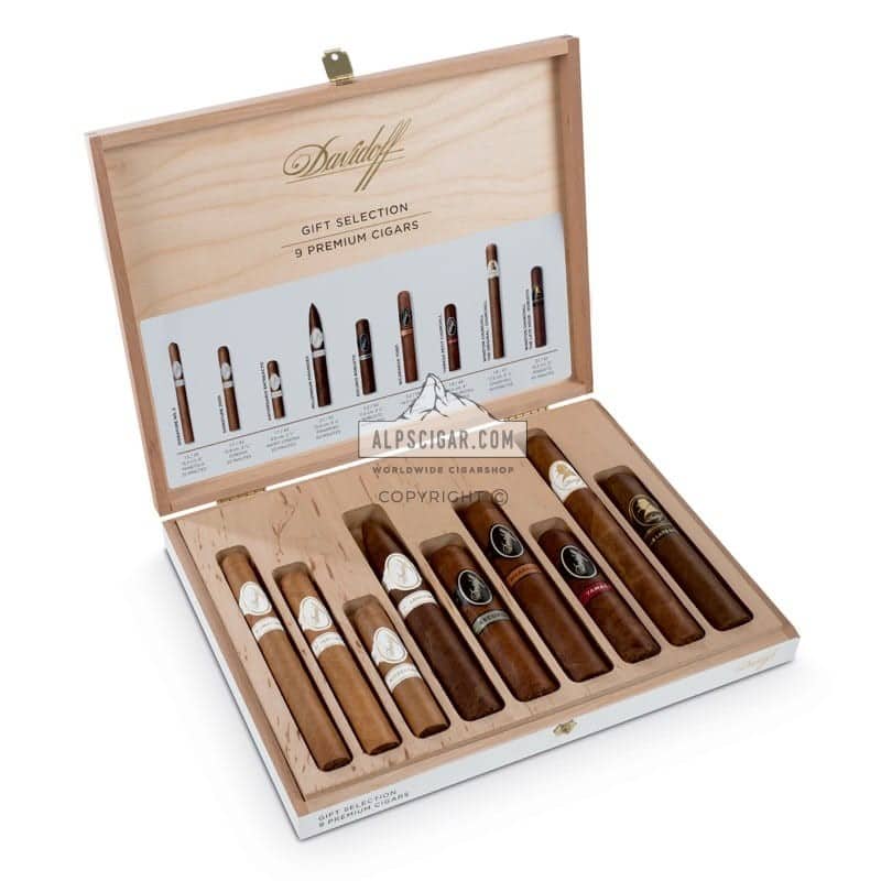 Alpscigar vous propose soit pour les Fêtes de fin d’année soit tout simplement pour faire plaisir. Un magnifique coffret Davidoff Gift Premium Selection 9’S, uniquement disponible en Europe, contenant les cigares les plus vendus de Davidoff, aux mélanges d’arômes uniques de la marque.