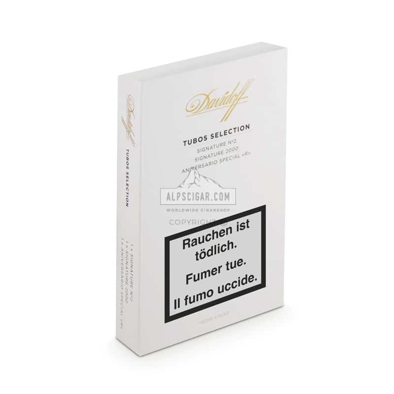 L’assortiment Davidoff Tubos Selection White contient 3 cigares de la gamme principale : Davidoff Signature No. 2 – Le format intemporel Panetela retient les notes terreuses et boisées de ce mélange harmonieux, souligne les arômes floraux et laisse un arrière-goût particulièrement pur et crémeux. Davidoff Signature 2000 –