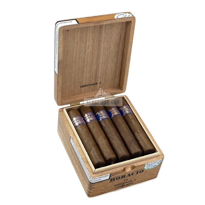 Le Horacio Héritage 2 est un module Grand Robusto qui mesure 128 mm de longueur et a un diamètre de 22,2 mm (ring 56). De force moyenne, il vous faudra entre 45 et 60 minutes pour le déguster.