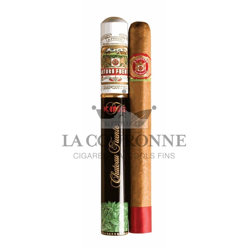 Le Château Fuente King T est un magnifique Churchill drapé d’une exceptionnelle feuille de cape type “Rosado Sungrown”, fine et soyeuse avec belle couleur maduro claro, originaire d’Equateur. La feuille de sous-cape et la tripe sont composées de tabacs de République Dominicaine. Avec une longueur de 168 mm et un cepo de 49, la mise en route reste facile avec un excellent tirage.