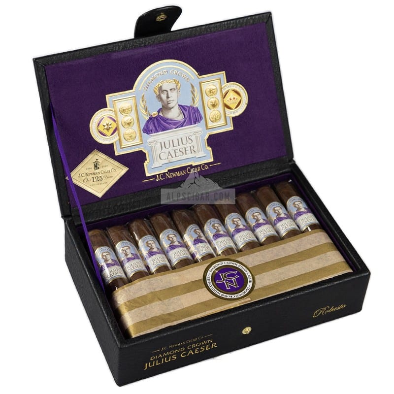 Le Diamond Crown Julius Caeser Robusto est un cigare super premium en édition limitée de JC Newman qui a été crée à l’occasion de leur 115ème anniversaire. Sa qualité de fabrication est tout simplement remarquable. Ce cigare est fabriqué à la main, avec une cape Équateur Habano, une sous-cape et une tripe de République Dominicaine.