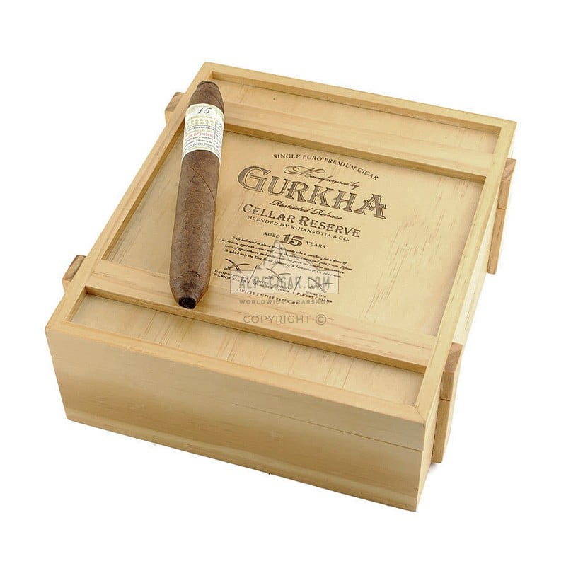 La Cellar Reserve 15 Years de Gurkha, utilise les meilleurs tabacs matures de qualité supérieure de 15 ans de la République dominicaine, maintenus ensemble par une sous-cape Olor et finis par une cape Criollo 1998. Étant donné que la maturation de ce cigare joue un rôle important, les boîtes ressemblent à l’origine à une boîte à vin, ce qui donne aux Gurkhas un look tout à fait particulier. Cet amour du détail est également évident dans chaque cigare, tous portant une queue de cochon en forme de spirale comme ornement sur le bonnet.