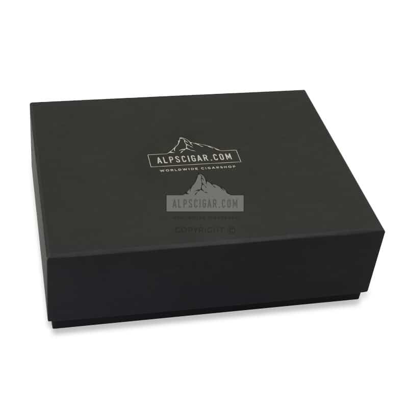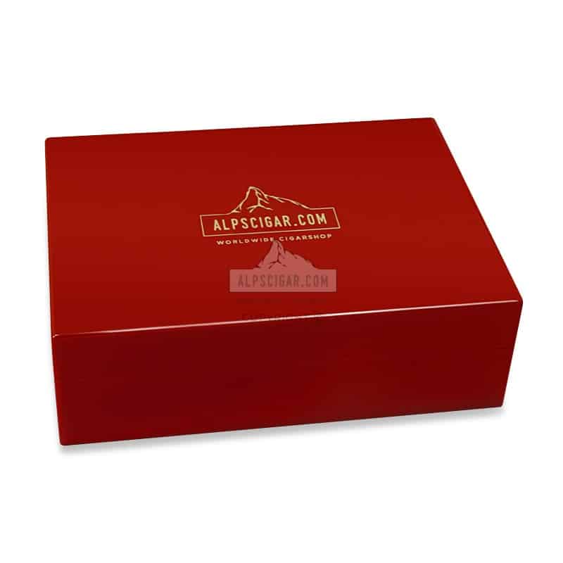 Cet humidor avec le logo Alps Cigar a une capacité de 50 cigares (Taille max Corona, bague 52) et possède une structure façonnée de différents panneaux, de bois massif et de placage pour assurer une meilleure stabilité. Les charnières et leurs vis sont polies miroir à la main avant d’être plaquées en or véritable.